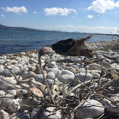 …and with art moments. Like finding this piece of natural art at the bay. Creating a cairn – a stone tower – at sunset. Reading the Matisse biography in this southern light he enjoyed, too.
