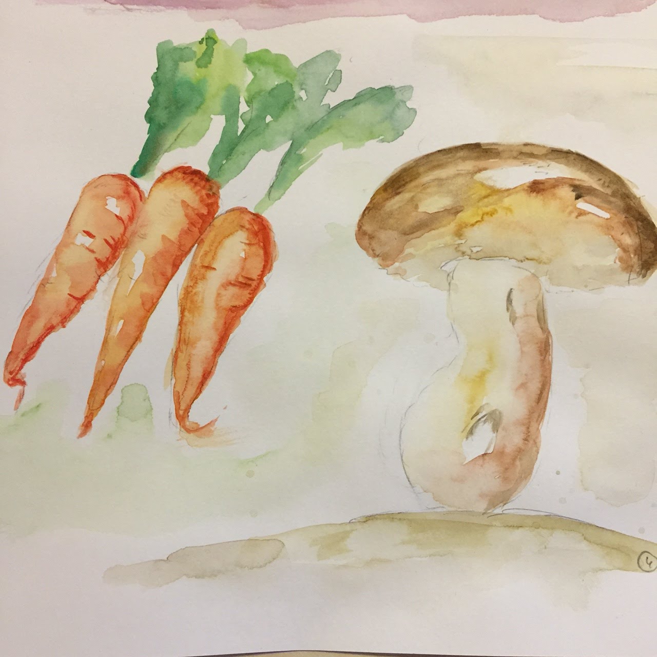 From the first exercises, we moved to: vegetables. The traditional starting objects.