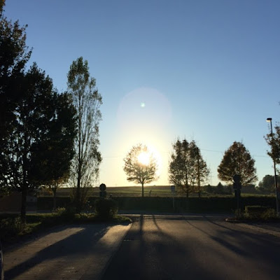 More sun-inspired images: the sky cleared during Friday, and in the evening, we went for a walk at sunset time. I didn’t have my camera, which probably was a good thing, as this gave me an instant opportunity to follow the advice of my new art teacher: